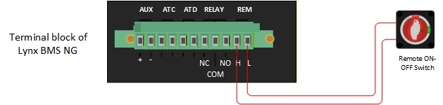 The Lynx BMS NG satisfies the requirement provided you remove the loop and install a remote switch. We normally suggest the Blue Sea 6006 as a remote switch. It is way bigger than it needs to be but it looks important enough that nobody is going to turn it off by accident. We normally draw it as shown below: